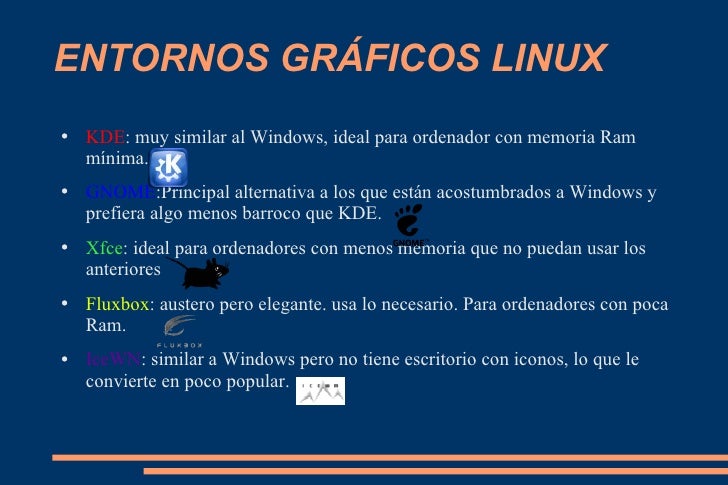 de Internet, etc. Linux puede usarse mediante un interfaz gráfico al